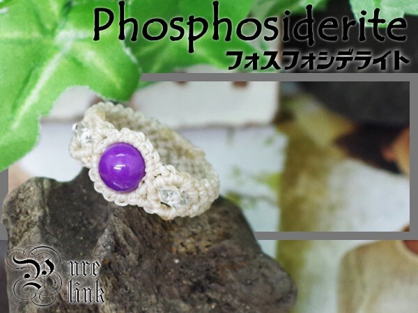 - 心を癒す紫魔石『フォスフォシデライト』マクラメ編みリング(指輪)