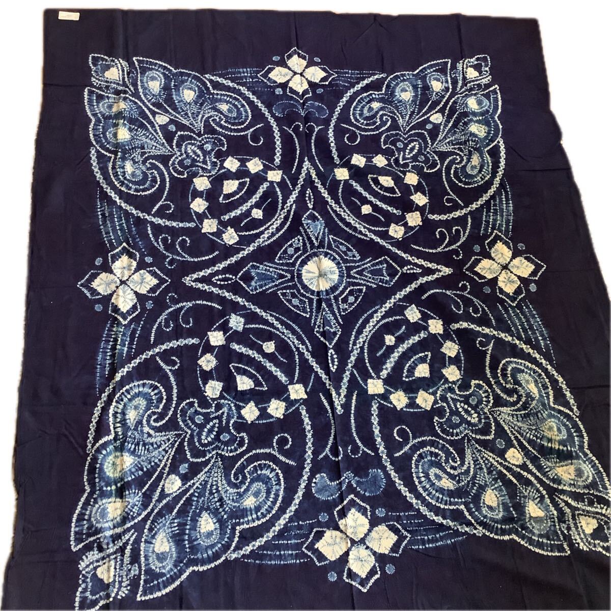 - A4 天然藍染布 大判 146㎝×180㎝ 手絞り布 タペストリー 敷物 テーブルクロス 藍染 インテリア 木綿
