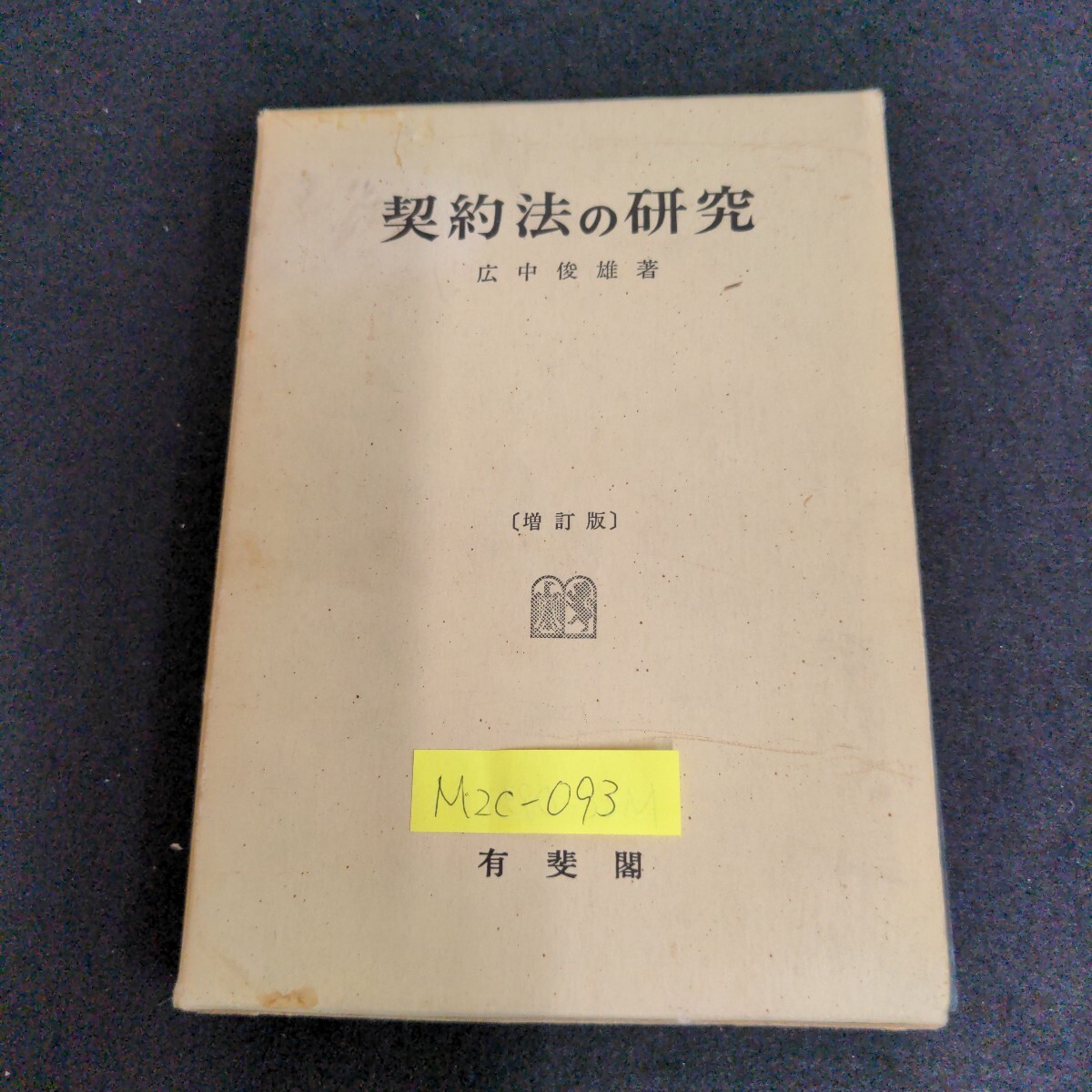 - M2c-093 契約法の研究 増訂版 昭和39年6月30日 著者/広中俊雄 3版第1刷発行 増訂 契約および契約法の基礎理論 契約の自由とその制限