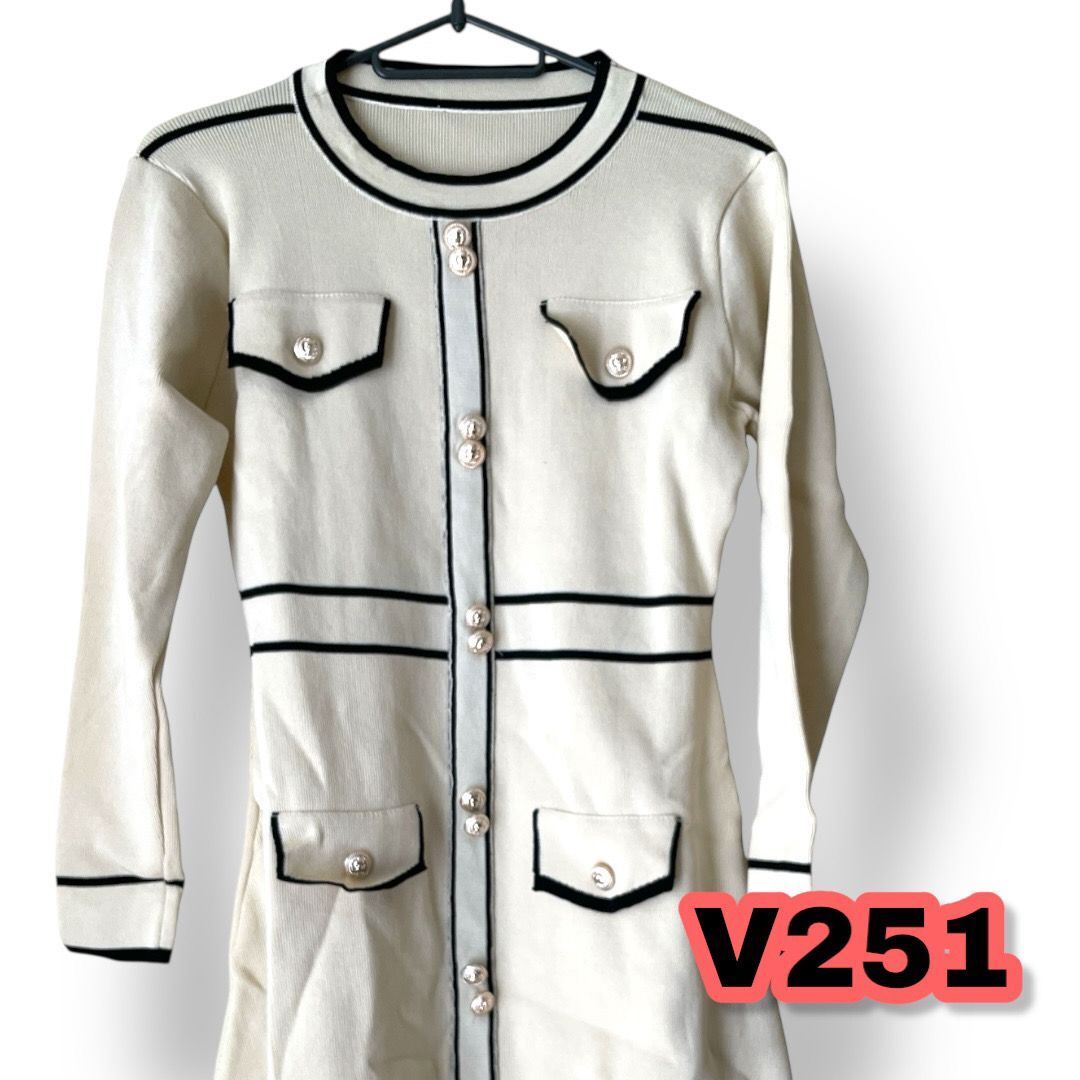 - [UQQA] パイピング ニット ワンピース 袖あり 上品 軽量 似合う 女の子 流行り 20代 結婚式 人気 着まわし 女装 低身長 メ 管理V251