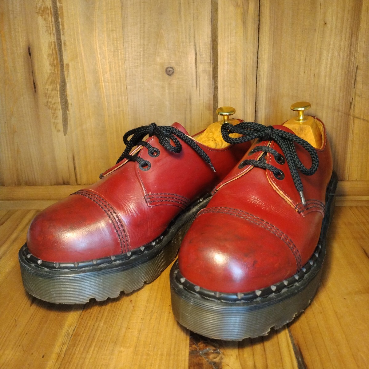 > 貴重 入手困難 英国製 ドクターマーチン Dr.Martens 3ホールレザーシューズ クレイジーボム チェリーレッド UK9 oi PUNK SKINS 甲本ヒロト