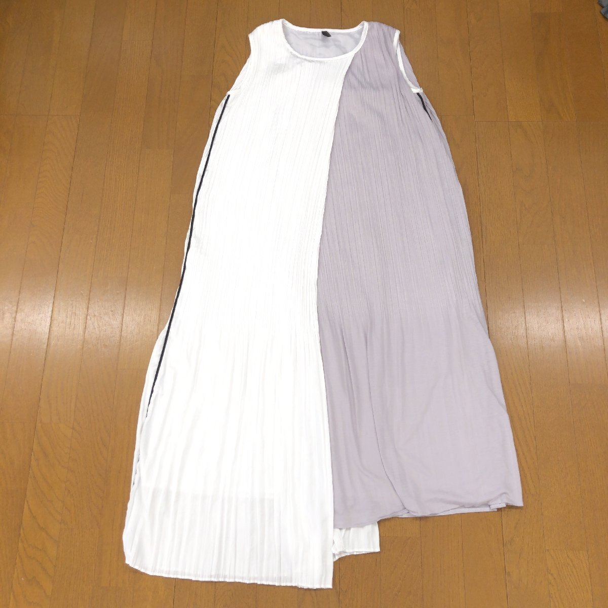 - AULA AILA アウラアイラ アシンメトリー バイカラー ノースリーブ プリーツ ワンピース 0 白 ホワイト×ラベンダー ミモレ丈 レディース
