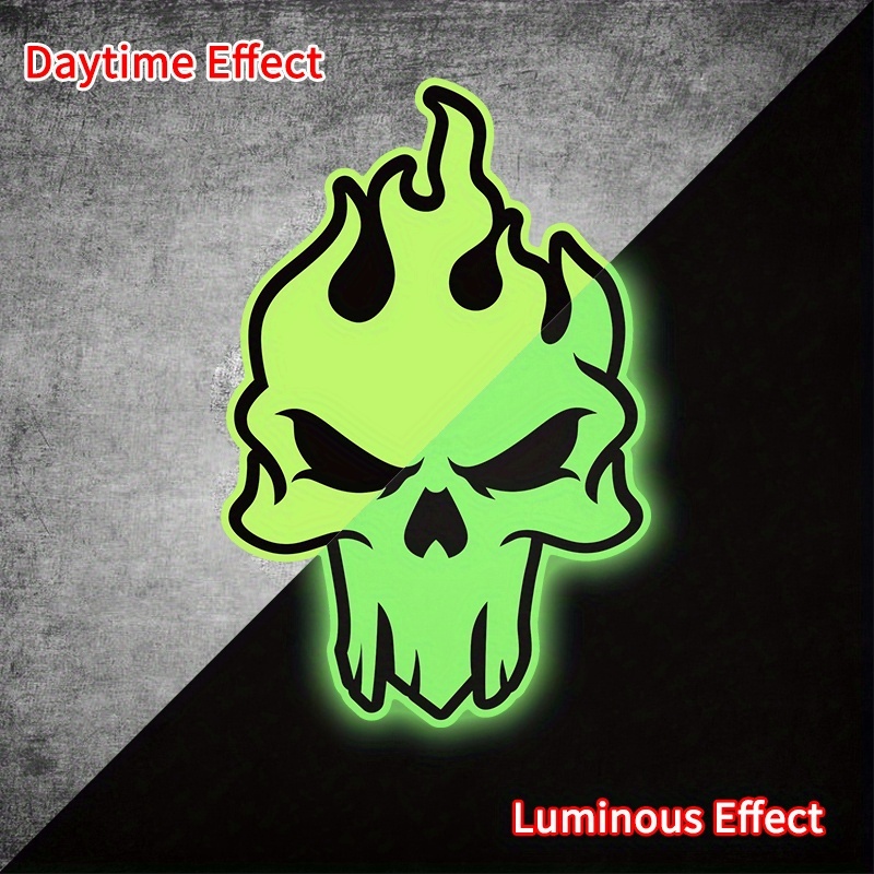 - ステッカー がいこつ 反射 蛍光 車用 シール 12cm 光るスカル どくろ ビニール 防水 かっこいい おもしろ バイク オートバイ 2D 窓用 t7960