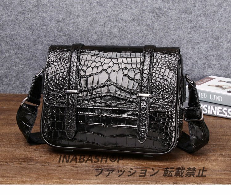 - ワニ革 ショルダーバッグメンズ クロコダイル革 ポシェットメッセンジャーバッグ 横型ビジネスバッグ 本皮 斜めがけバッグかばん男性用
