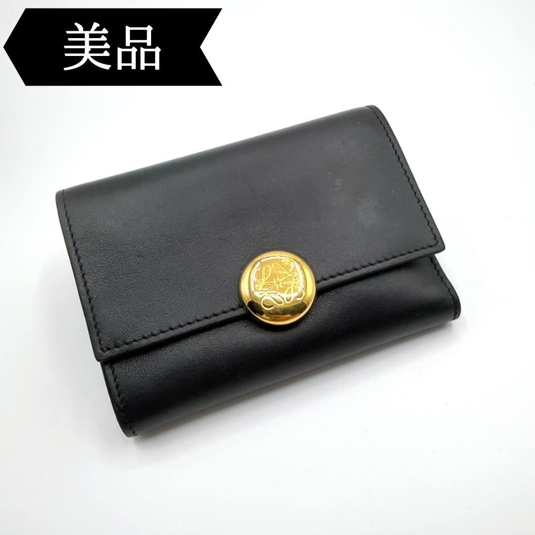 - ◇ロエベ◇レザー/ぺブル/バーティカル/ウォレット/スモール/三つ折り財布