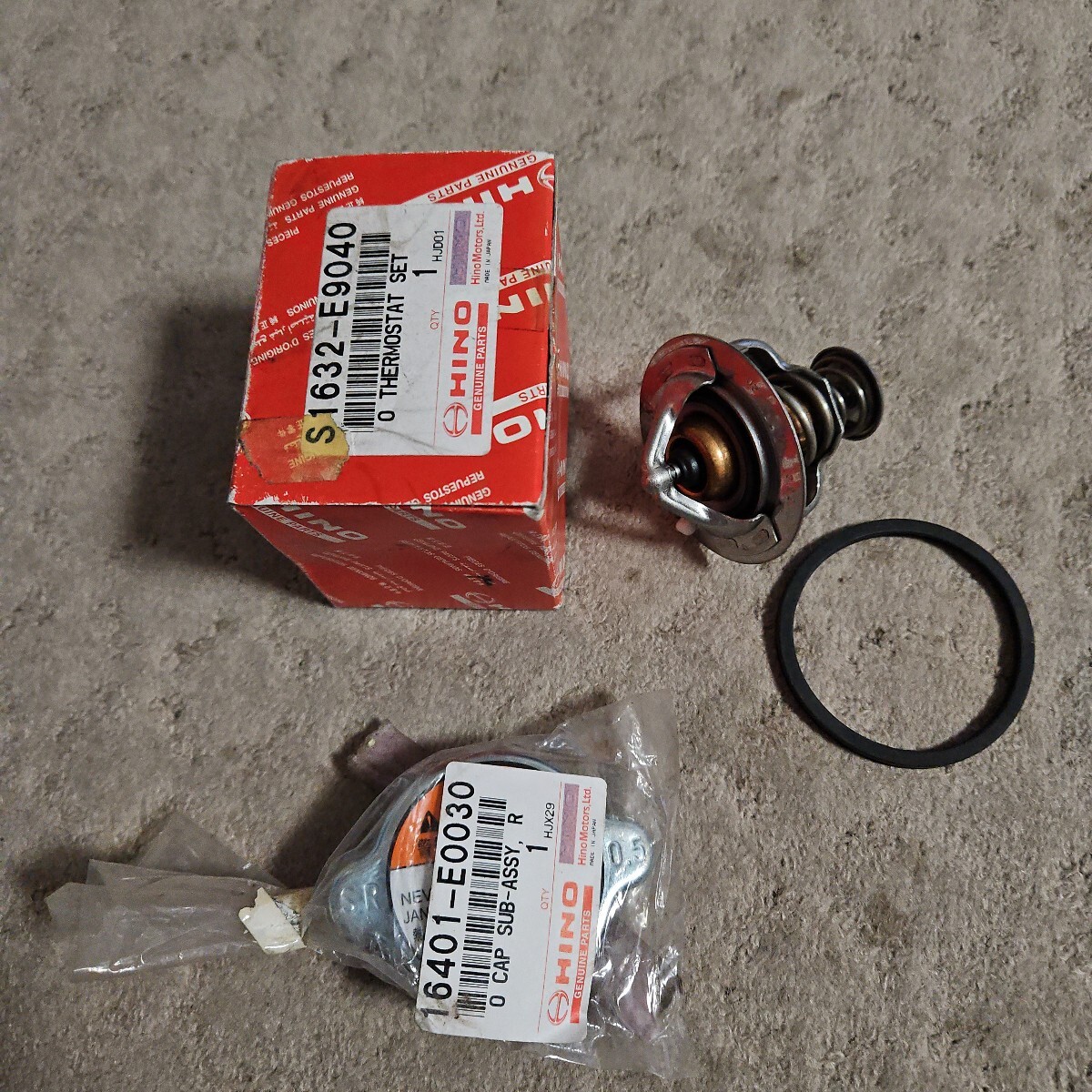 - 日野 レンジャー J05Eエンジン用 サーモスタット、ラジエターキャップ セット