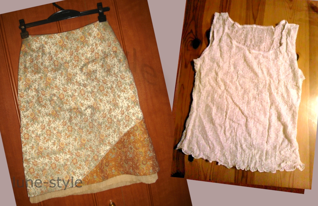 > 【セット出品★J&R/peyton place】煌めきセット、銀糸を使った レーシー タンクトップ & 金オレンジの刺繍スカート[コーデ出品]