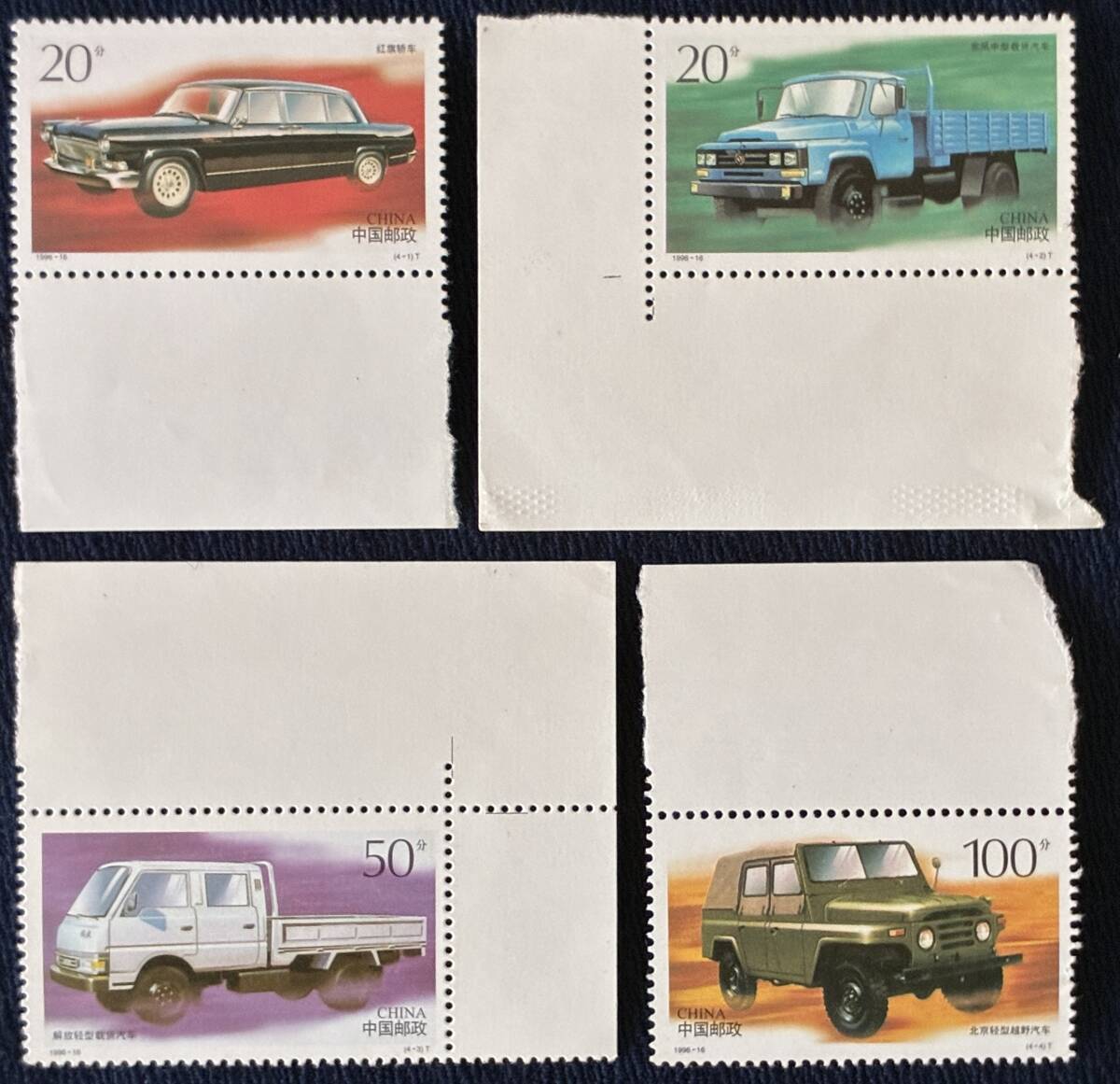 - 新中国切手ー未使用 1996年 1996-16T 中国の自動車 4種完 耳付き