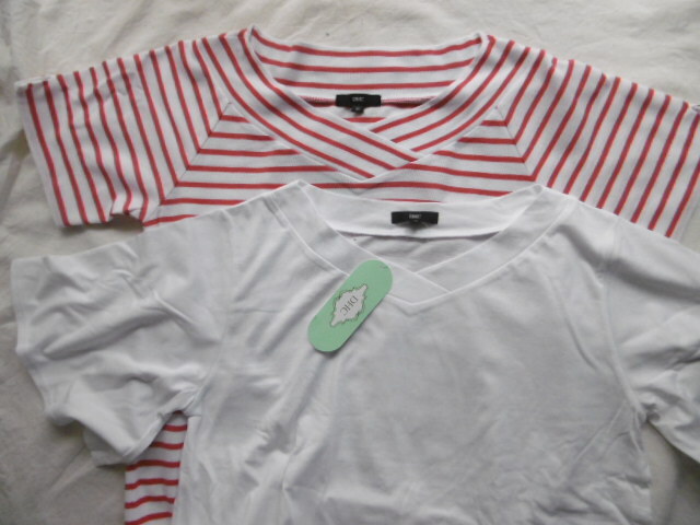 - 未使用 2枚まとめて/セット DHC 半袖 フレアスリーブカットソー ホワイト・赤白ボーダー Mサイズ シンプル定番