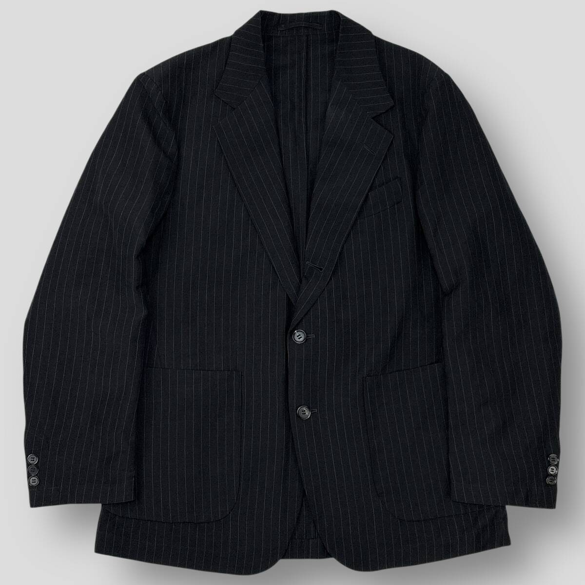- 美品 la favola ラファーヴォラ 23SS SINGLE UNCONSTRUCTED JKT ウールリネン ストライプ アンコンジャケット J17-23101 ブラック SSM5701