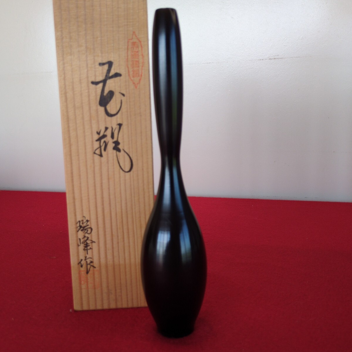 - 2508-83 花瓶 瑞峯作 高岡銅器 銅製 花入 茶道具 華道具 一輪挿し