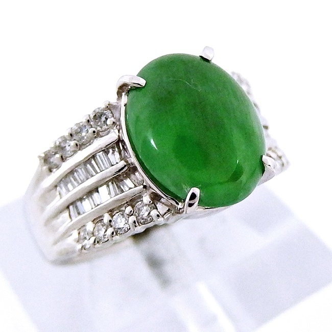 - Pt900 ★リング ヒスイ4.22ct 5月誕生石 ◇ダイヤ0.45ct ●13-号 ■ソーティング付き 【中古】 /s22247/10004602