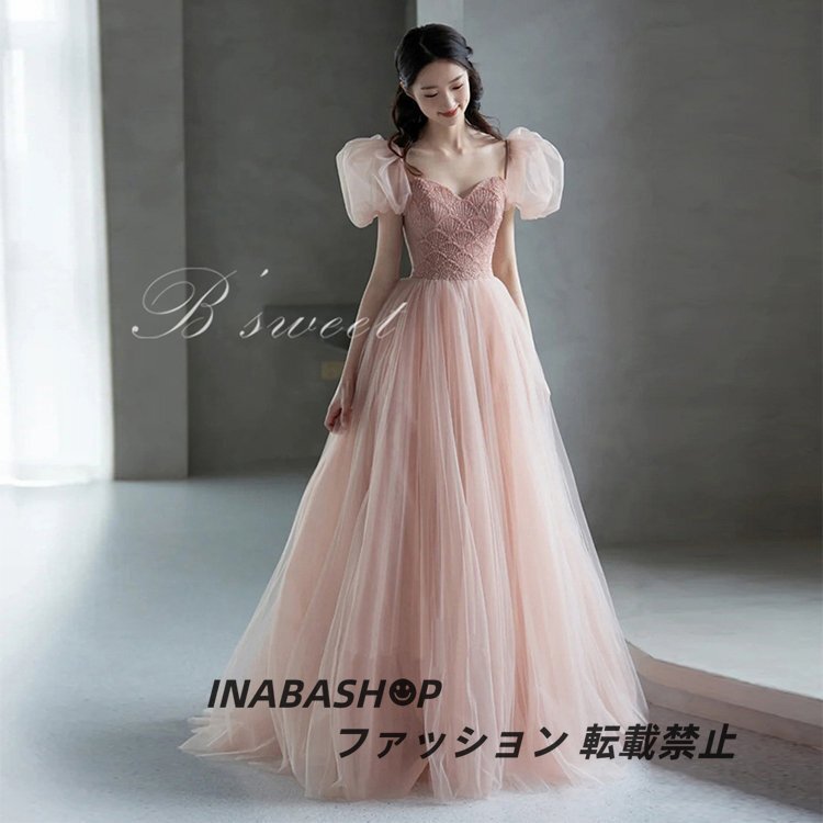 - カラードレス ロングドレス ウェディングドレス 大人ドレス パーティードレス Aライン プリンセスライン ボリューム袖 演奏会 二次会