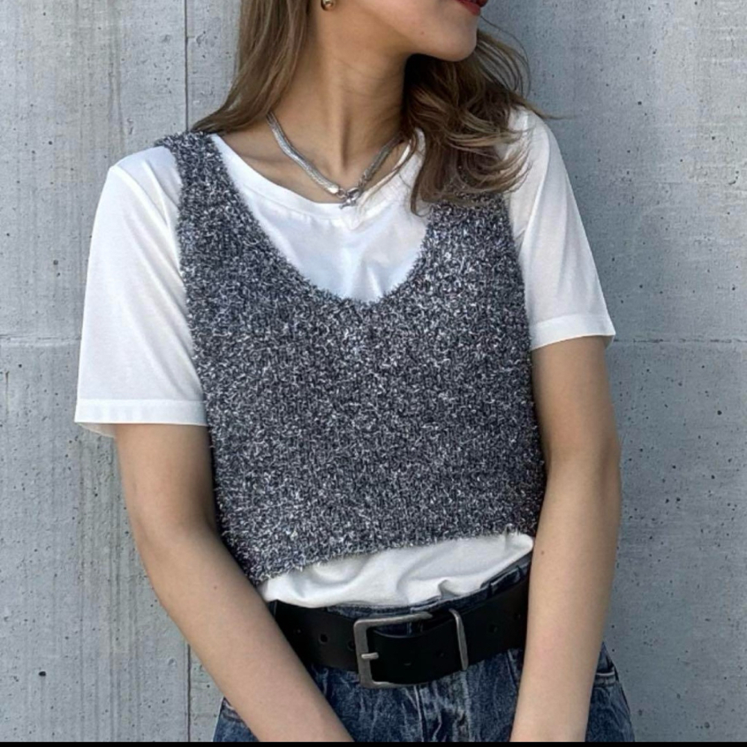 - 【美品】 ジーナシス JEANASIS シャギー グリッタービスチェ シルバー
