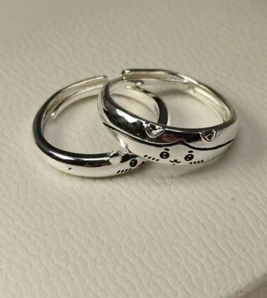 - ちいかわ ハチワレ デザイン シルバー ペアリング フリーサイズ 指輪 アクセサリー シルバー リング