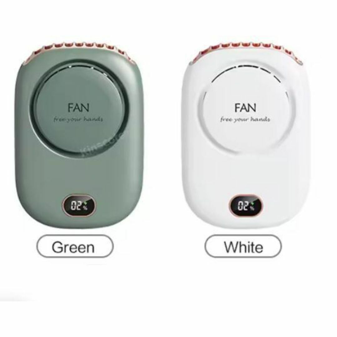 - 2個セット 2色セット ホワイト グリーン 首掛けファン 扇風機 手持 腰掛け ハンディ