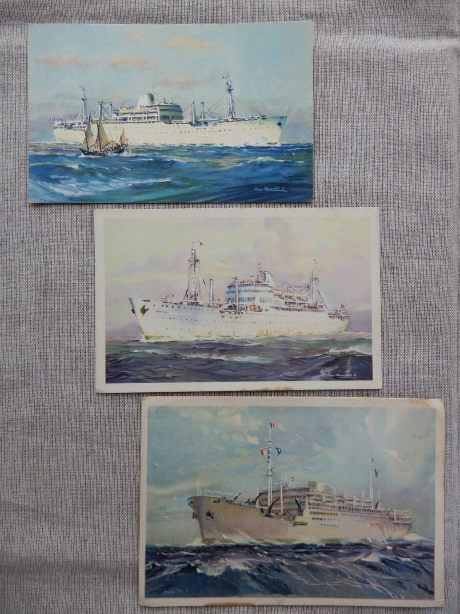 - フランス海運会社メサジュリ・マリティム「Messageries Maritimes」客船絵画絵葉書3枚 BC295