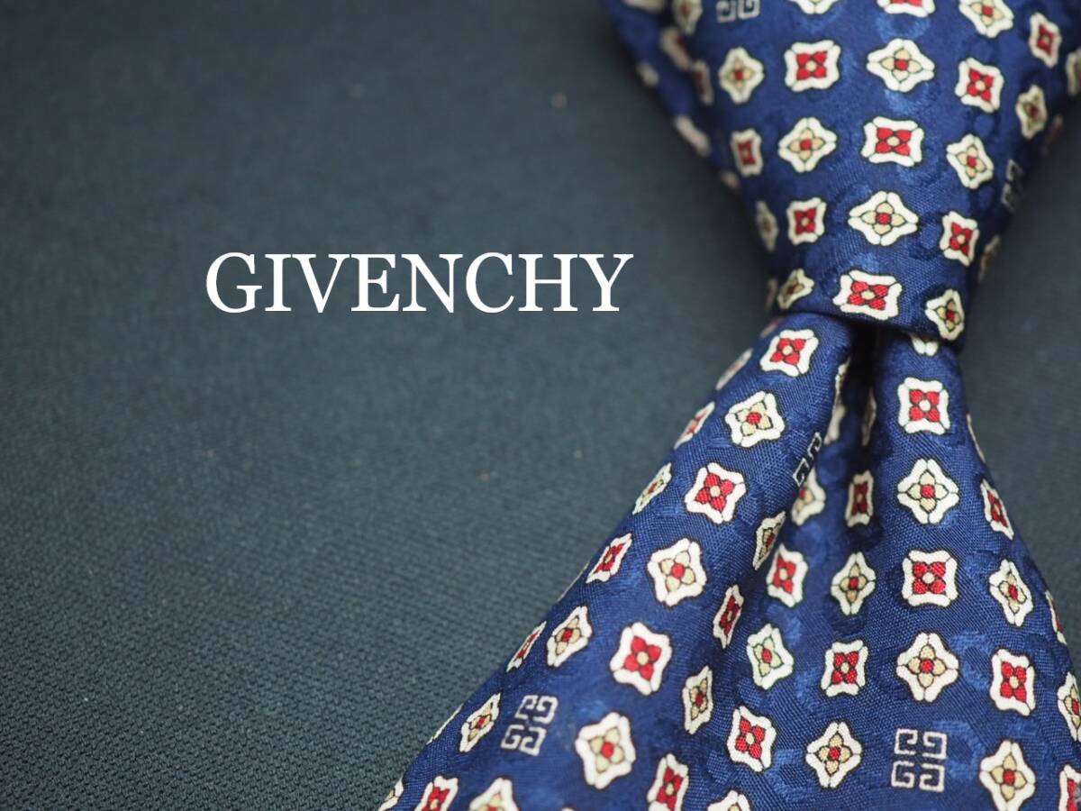 > 美品【GIVENCHY ジバンシイ】 F1364 ロゴ ネイビー系 SILK ブランド ネクタイ 古着 良品