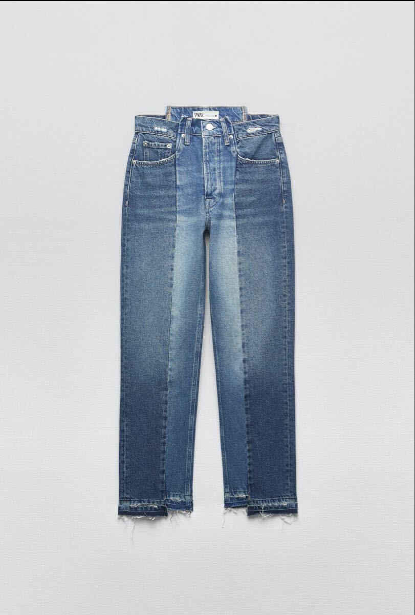 - 新品 タグ付き ZARA コントラスト クロップド ストレートデニム