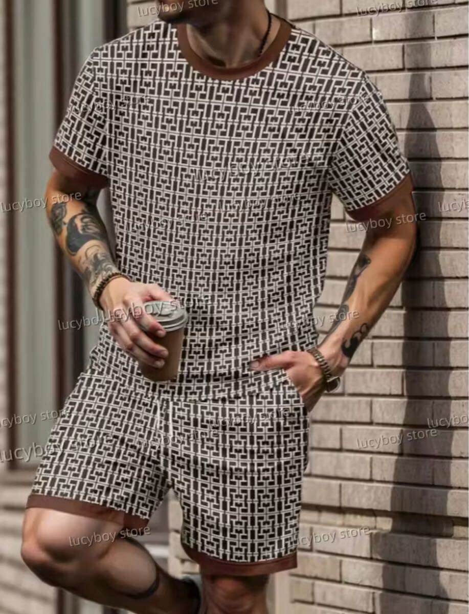 > メンズ セットアップ Tシャツ 短パン 半ズボン 派手 高級 ブランド 上下セット 柄 高見え おしゃれ ラグジュアリー グレー シンプル