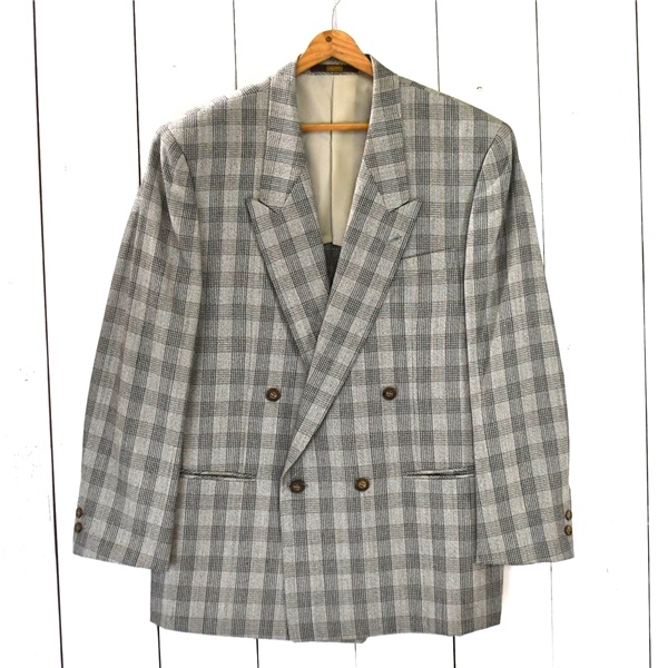 4つボタンダブル。ノーフラップポケット。ノーベント。袖口2つボタン。開き見せ。背抜き。ネーム刺繍なし。この機会に是非!