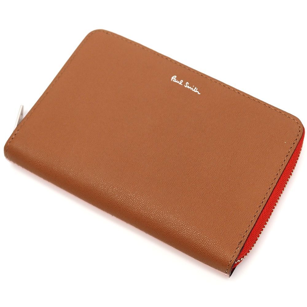 - G06149 未使用品 Paul Smith カラーブロック ラウンド レザーウォレット 財布 キャメル/ピンク BPU084 ポールスミス レディース