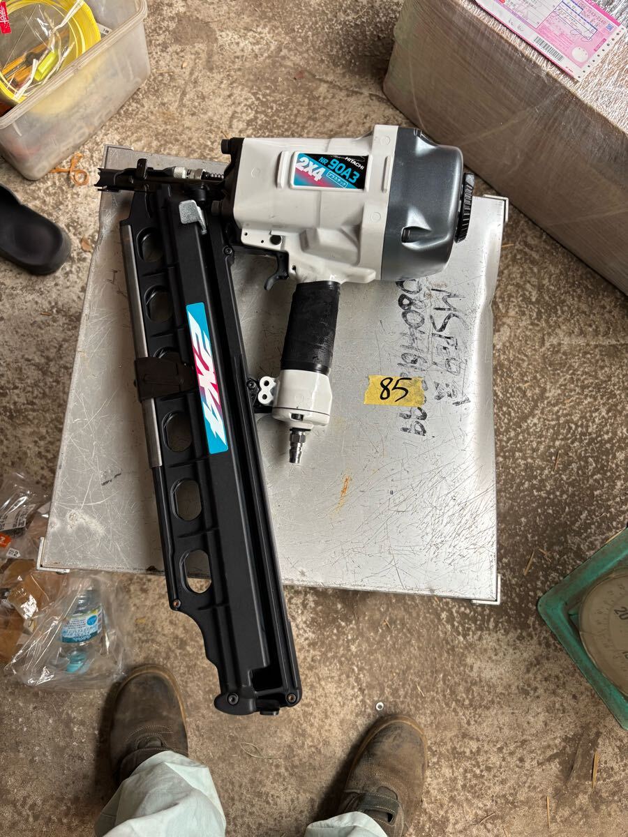 - 釘打ち機 日立 丸釘打機NR90A3。新品同様。未使用。長期保管品。動作未確認