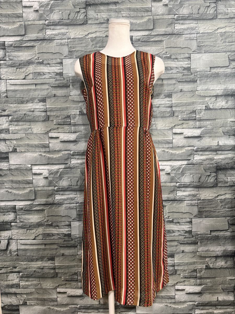 - ★送料無料▲昭和レトロ ワンピース 総柄 ブラウン系 ストライプ ノースリーブ レディース