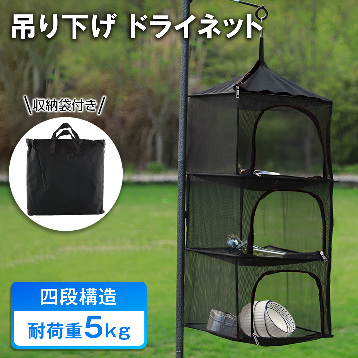 - ハンギングドライネット 4段 吊り下げ ハンギングラック 食器乾燥 ポップアップ ドライネット 干しあみ キャンプ 天日干し ハンギング