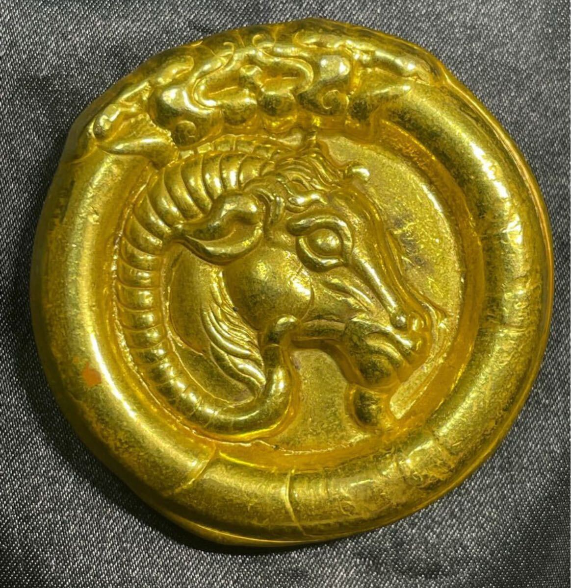 > 中国古銭 金貨 干支羊図 [大清 金庫 康熙年造 御賜足金]銘 美品 超激レア 金運UP 縁起物 収蔵 開運金塊 金錠 金餅 インゴット 風水置物