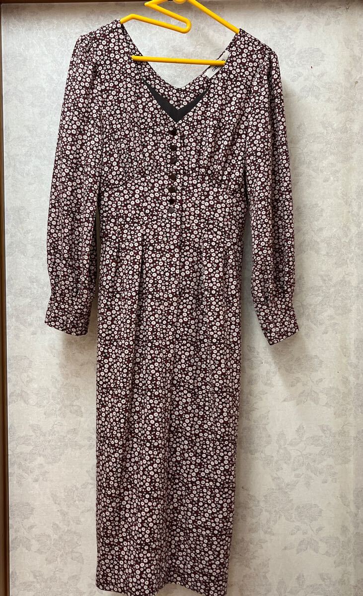 > ★COCODEAL★ココディール ワンピース 小花柄 ロング丈 ② えんじ 後ろリボン&ボタンが可愛い 裏地付き ポリエステル97%ポリウレタン3%