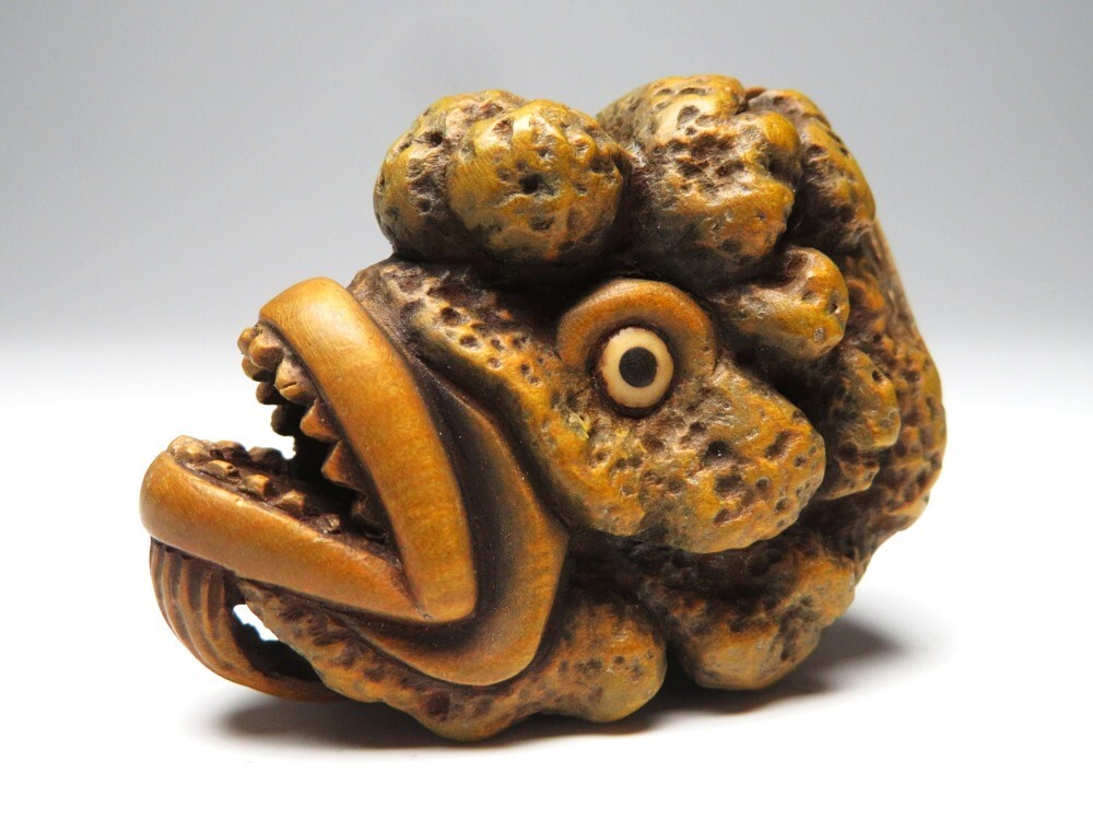 - 【11346】明治期 堤物 木製 雷魚 置物(初品・買取品)
