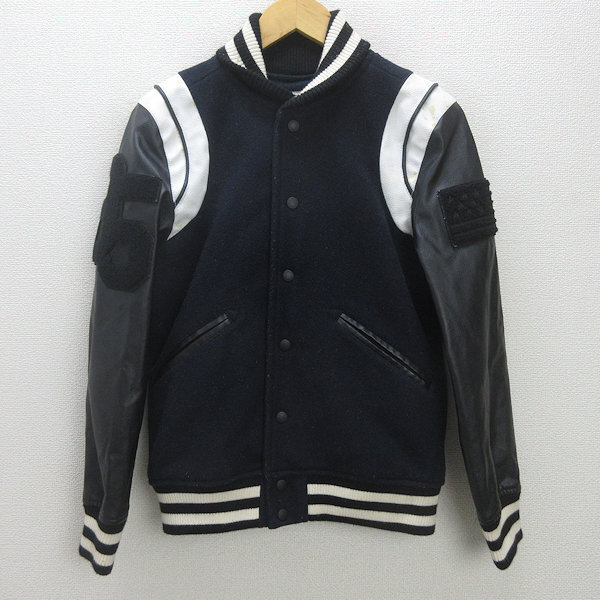 > H■トミー/TOMMY 袖PUレザー スタジアムジャンパー スタジャン【S】紺黒/MENS■91 【中古】
