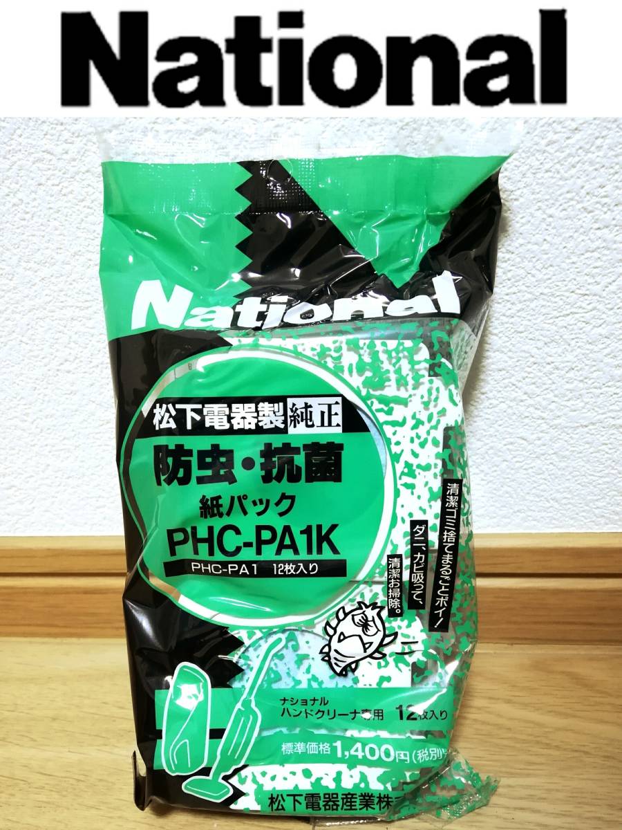 - 送料450円~ナショナル防虫/防菌 紙パックPHC-PA1K(12枚入り)松下電器製 純正PHC-PA1ダニ/カビNationalハンドクリーナ用 交換 パナソニック