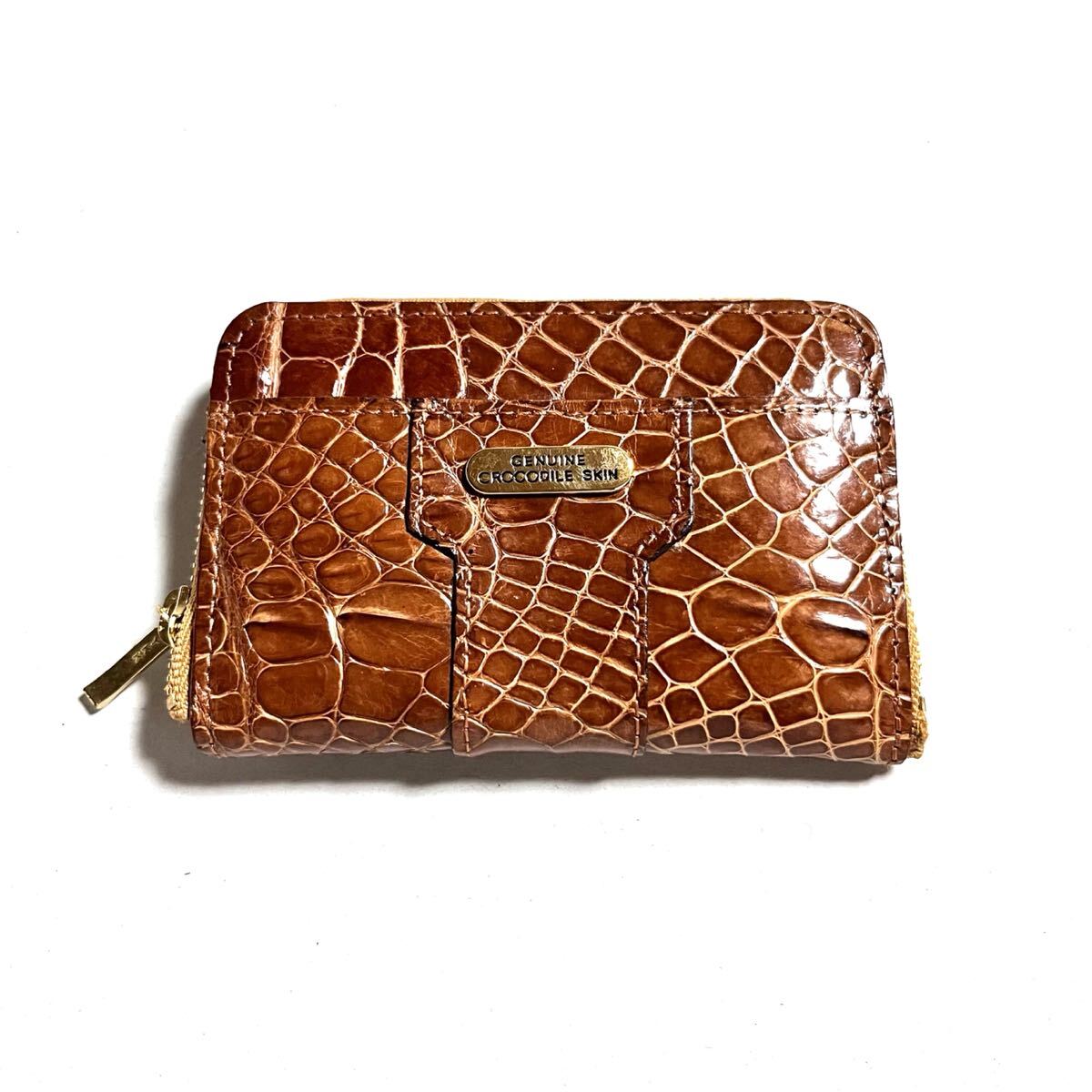 - クロコダイル クロコ ワニ ワニ革 小銭入れ コインケース 財布 レザー ラウンドファスナー 本革 ブラウン メンズ レディース ユニセックス