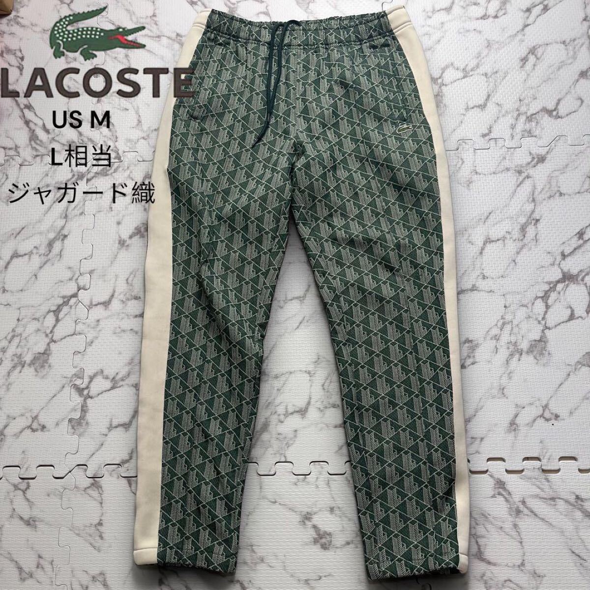 > L相当/極美品★LACOSTE ラコステ ジャガード モノグラム トラックパンツ 緑 ロゴ ジャージ 希少 入手困難 グリーン ジョガーパンツ メンズ