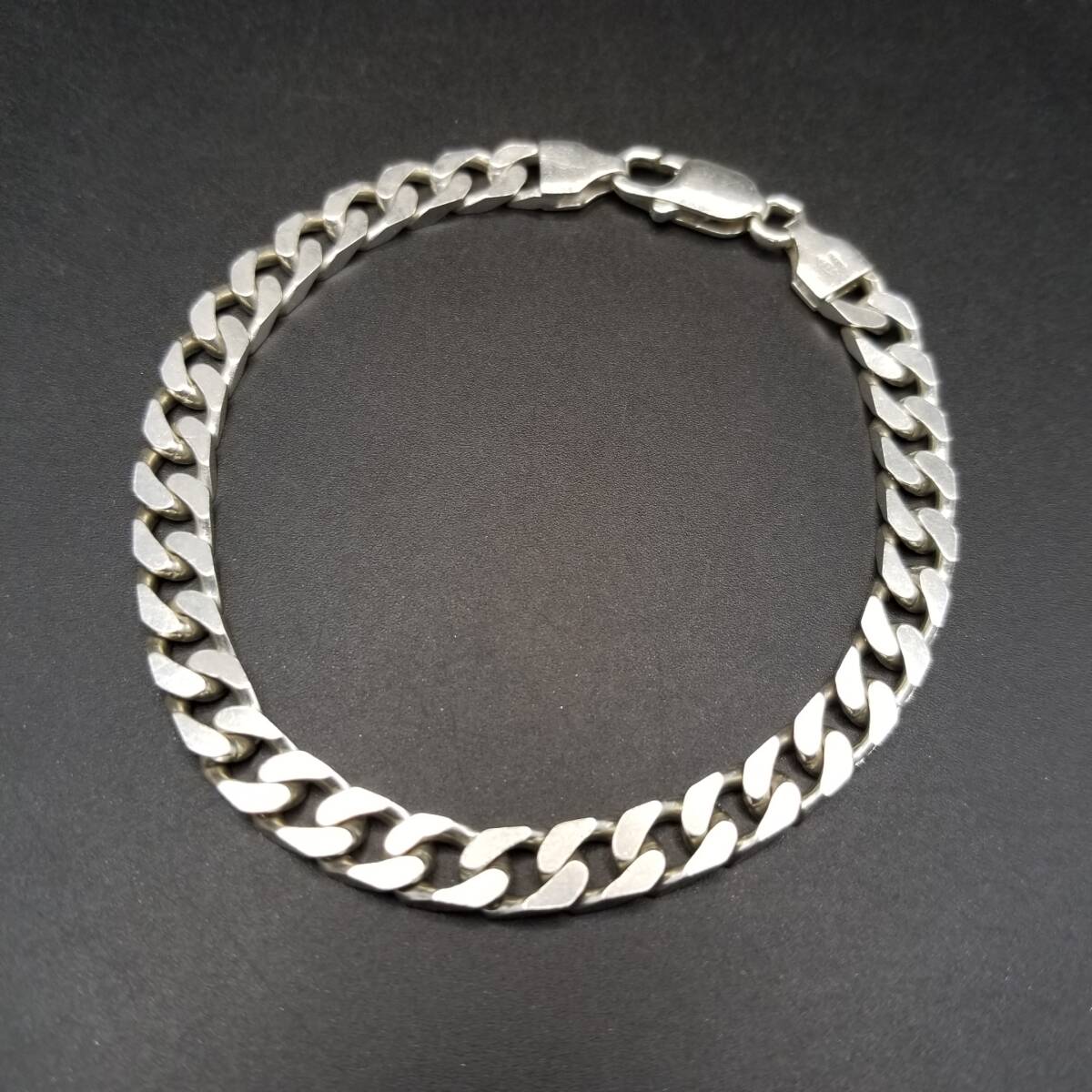 > イタリア製 シンプル 喜平チェーン 925 シルバー ヴィンテージ ブレスレット 銀 英国 London Convention マーク メンズジュエリー Y24-B③