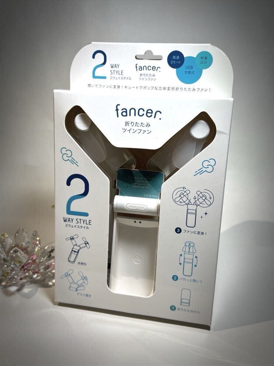 - fancer 2way 折りたたみツインファン ハンディファン HIRO 開いてファンに変身