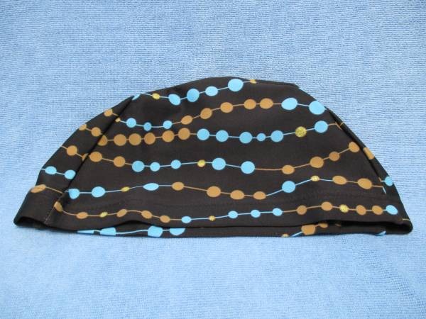 - 送料無料・新品・即決★大人用 スイミングキャップ ダークブラウン 水玉柄(水色・茶)フリーサイズ ツーウェイ素材 ★n
