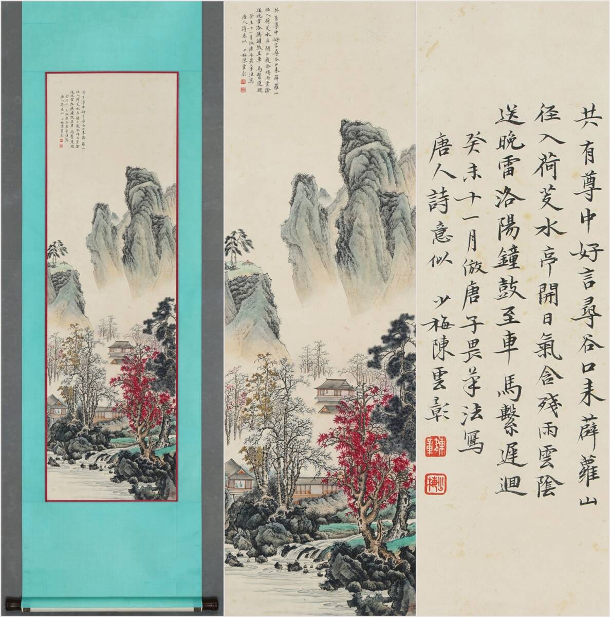 - 古美術 掛け軸 中国・近現代 「陳少梅書」 紙本 【幽渓隠居図】 立軸 書道 巻き物 肉筆保証 唐物 古画 画心135x42cm LT-250842