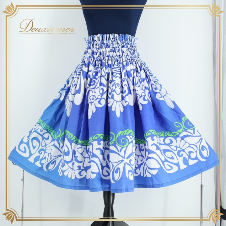 > フラダンス 衣装 パウスカート ブルー系 フラ ダンス ハワイアン シングル 花柄 レッスン 青 白 緑 アロハ ハワイアンプリント 明るい