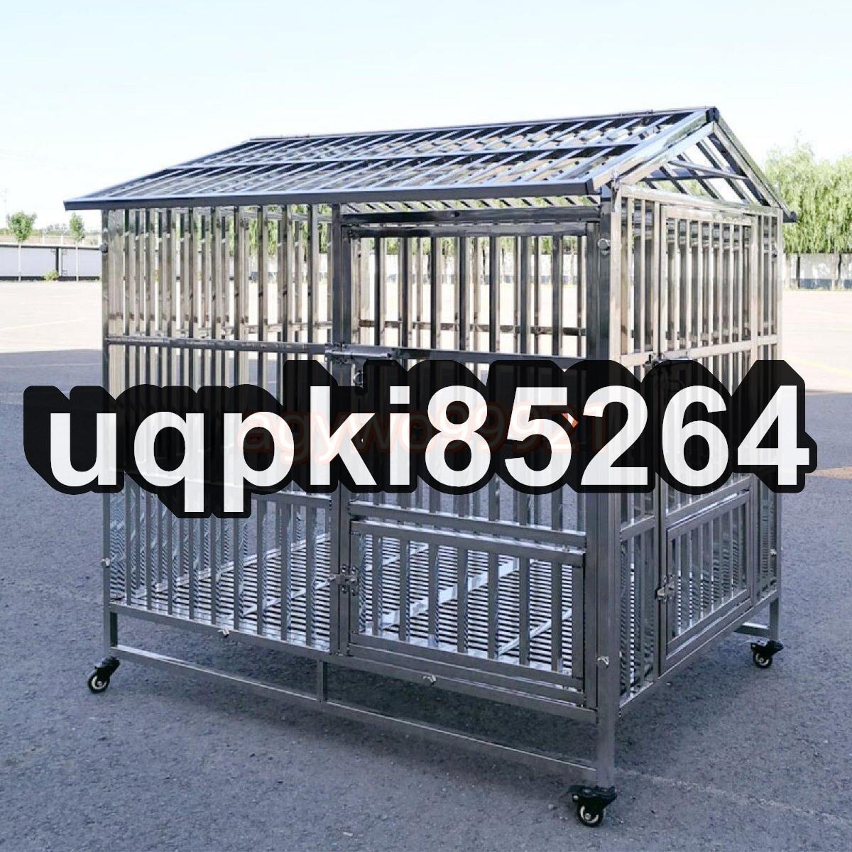 - ペットケージ 大型犬 ドッグケージ ステンレス鋼 犬用ケージ ドッグハウス 犬小屋 屋根付き キャスター付き サイドドア付き 組立簡単