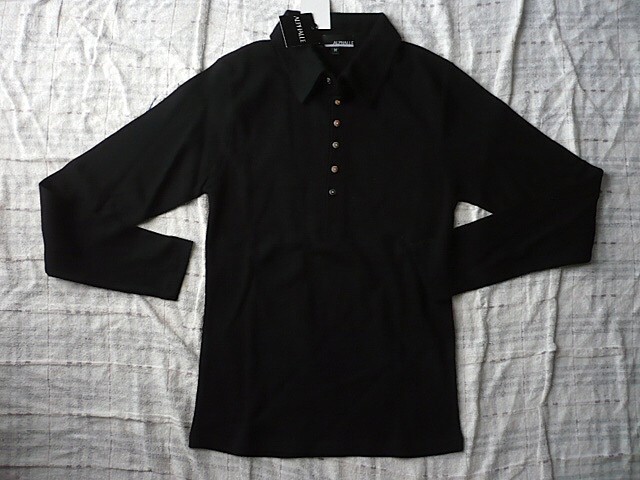 - ALPHALLE★多釦リブ織長袖シャツ 黒 ストレッチ