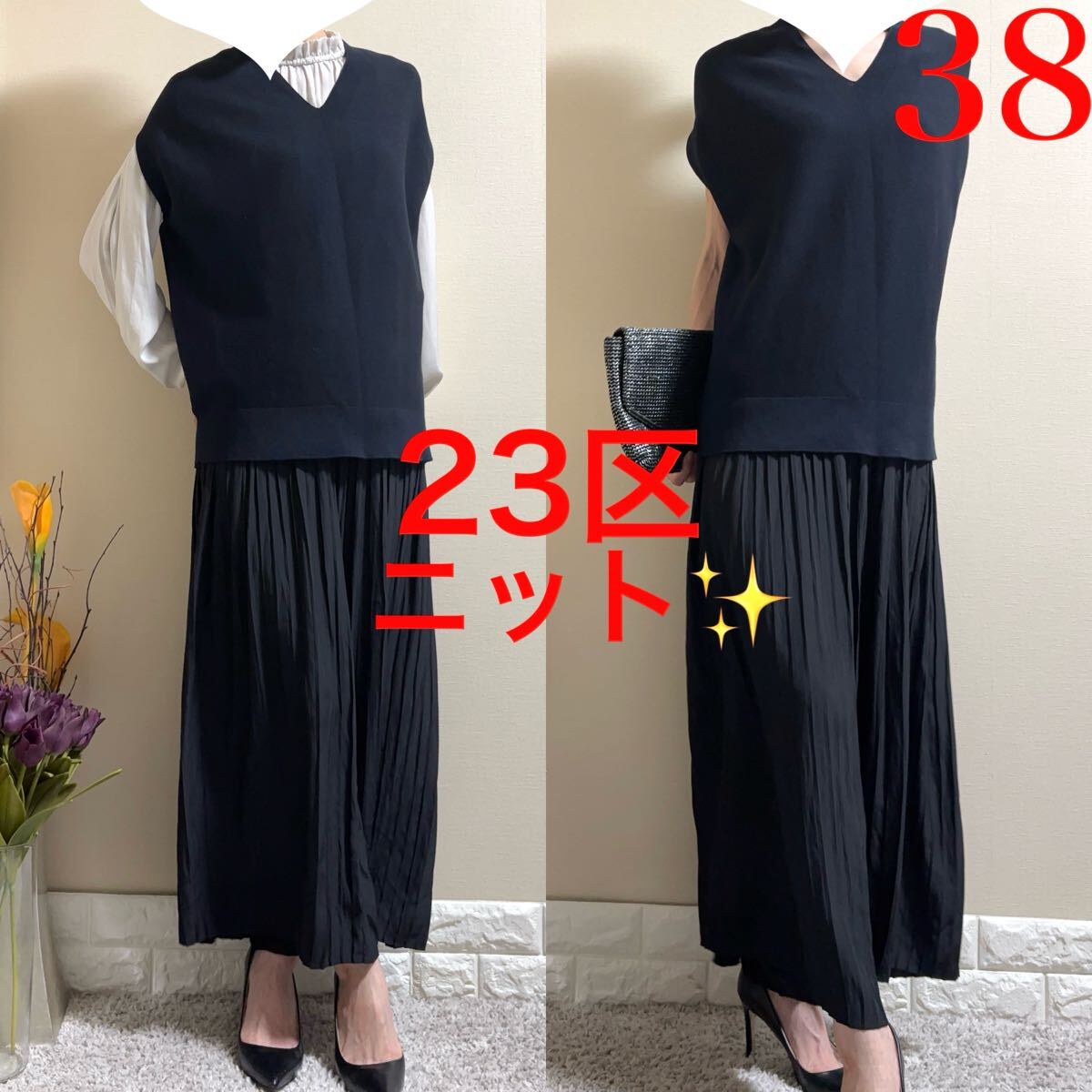 > 美品!23区 コットンポリエステル ニット ベスト 濃紺 通年 洗える 38 F ゆったり ワンサイズ こなれニット オンワード 樫山