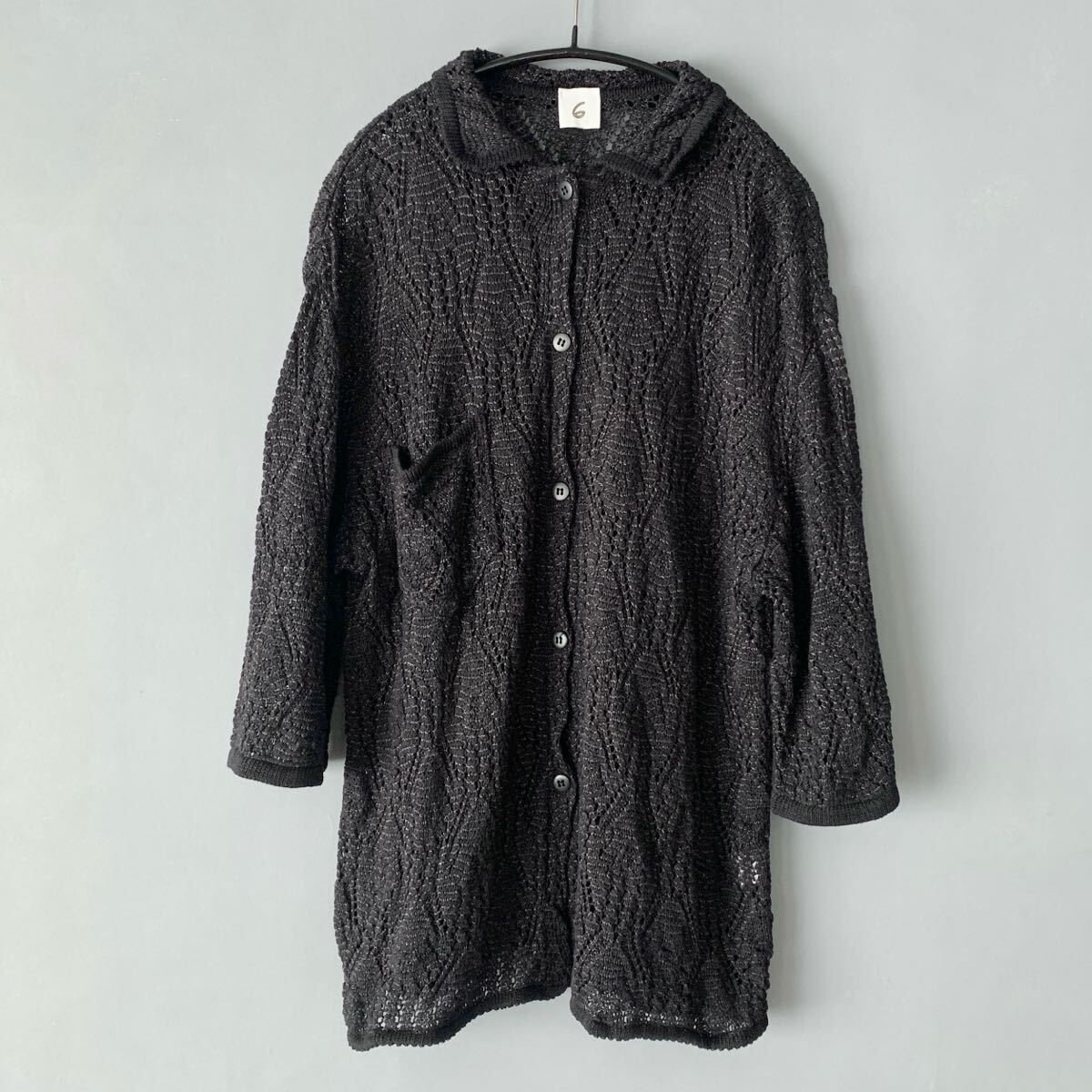 - 6 ロク roku クロシェ ニットカーディガン ブラック 黒 透かし編み