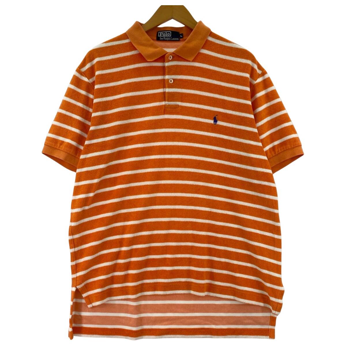 > Polo by Ralph Lauren ポロバイラルフローレン ボーダー パイル ワンポイント刺 ポロシャツ sizeL/オレンジ×ホワイト