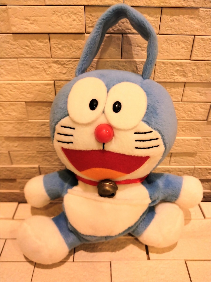- 匿名配送込み 昭和レトロ ドラえもん ハンドル付きぬいぐるみ ポーチ 小物入れ 約18cm