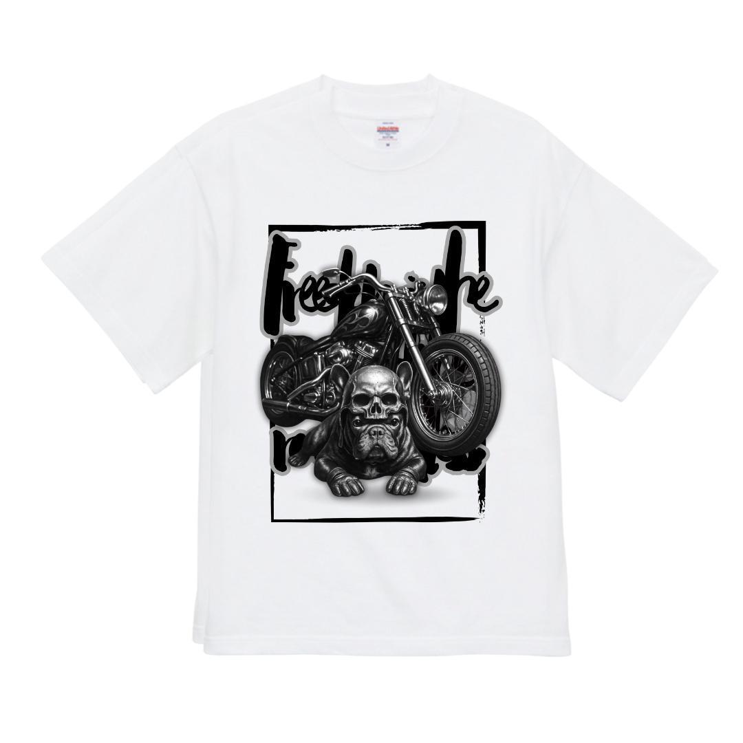 - UnitedAthle オリジナルオープンエンドTシャツ 犬とバイク 白 XL