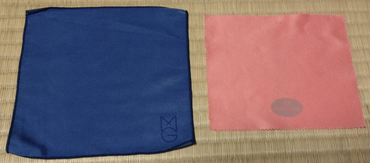 - 未使用のピンク色(MORE SUPER)とUSEDの青色(松屋MG)の眼鏡拭き