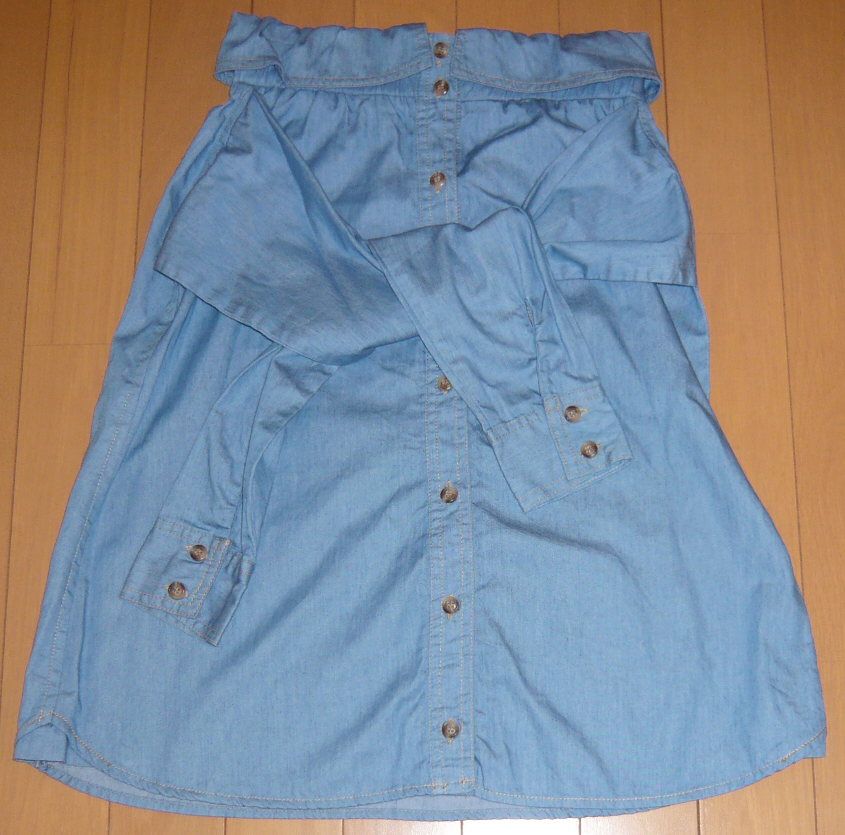 - 【送料無料・匿名発送】ダンガリーシャツ風 スカート シャツ巻きデザイン【未使用に近い】Mサイズ ダンガリー